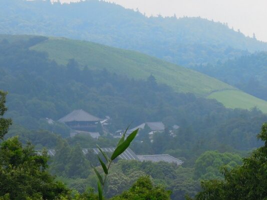 久秀の拠点多門城址から、東大寺・若草山を望む