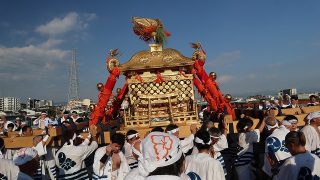 堺の祭 19 住𠮷祭2024 8月1日、2024年の住吉祭は、酷暑の中おこなわれました。晴れた空、肌に重い日の光、大阪で最も重いという住吉大社の大神輿は担ぎ手たちの肩に食い込み、痛みと汗をふきださせます。それでも神輿行列の最後、大阪から堺にかかる大和橋の上で「ヨイサー ... 2024.08.13 堺の祭
