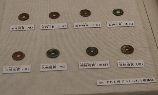 流通させやすい模鋳銭だけでなく、わざわざとつるんとした銭を鋳造した人物には、堺の街で使えるという「相互信頼」があれば、銭に似たものでいいんじゃないかという一種の開き直りがあったのではないか、そんなことを思いながら、ガラスケースの向こうの模鋳銭を見ていました。