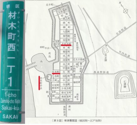 当時堺の海岸には土佐や紀州から運んできた材木の集積地があり、材木を扱う材木屋が集まっていました。その痕跡は材木町の名で残っています。江戸幕府ができ、街づくりに必要な材木や番匠や筏士が全国から集められました。当然堺からも行ったことでしょう。堺の材木町で羽振りをきかせていた筏士たちの子孫たちが江戸木場の鯔背(いなせ)な川並鳶になっていったのかもしれません。
