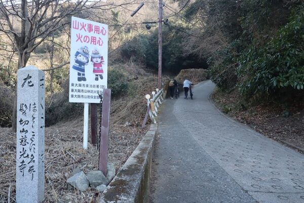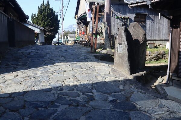 暗峠への道標と奈良方面への厳しい上り坂